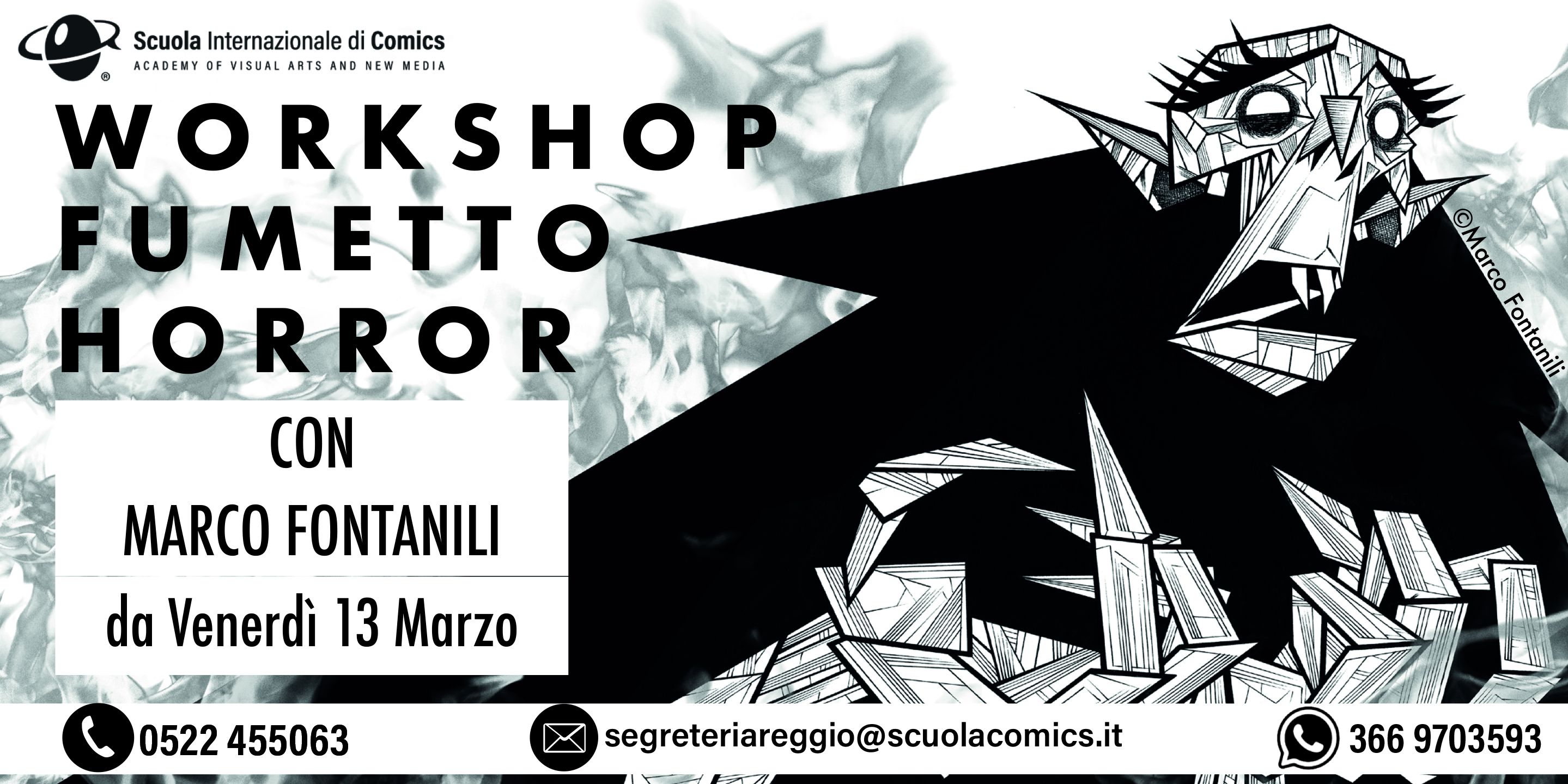 Venerdì 13 Marzo prende il via il Workshop di Fumetto Horror; strutturato in 10 lezioni totali, con cadenza settimanale, il venerdì pomeriggio dalle 14.30 alle 17.30.